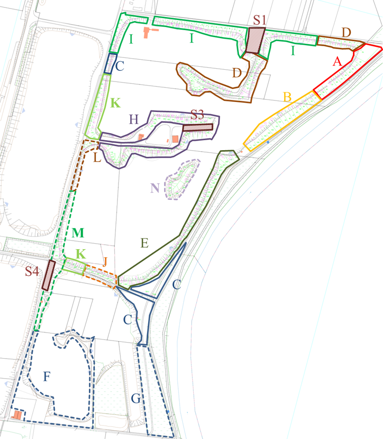 Jede Parzelle gehört zu einer Zone. Im Gelände sind die Zonen durch Farben gekennzeichnet.